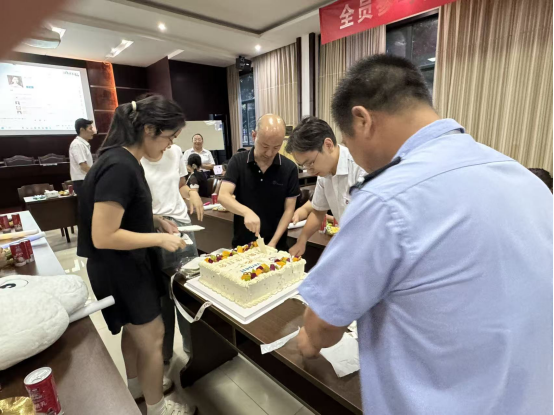 在溫馨的氛圍中,大家圍聚在蛋糕前,共同唱響生日歌。歌聲悠揚(yáng),傳遞著對(duì)壽星們最誠(chéng)摯的祝福。壽星們閉上眼睛,雙手合十,許下了美好的心愿。那一刻,時(shí)間仿佛靜止,整個(gè)會(huì)場(chǎng)充滿(mǎn)了溫暖與感動(dòng)。隨后,現(xiàn)場(chǎng)的主管們將一份份生日蛋糕分發(fā)到各位壽星手上,大家品嘗著甜蜜的蛋糕,分享著此刻的喜悅,幸福的味道在舌尖蔓延。